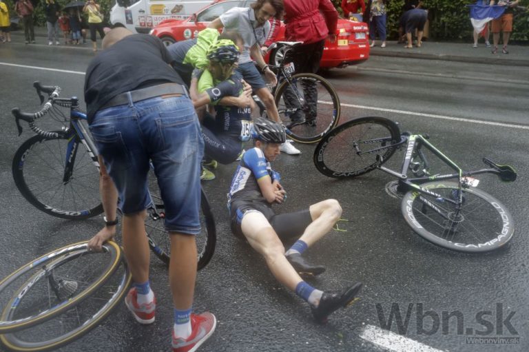 Do pádu pred cieľom 19. etapy 101. ročníka Tour de France sa zaplietol aj český cyklista Leopold Konig. Foto: SITA/AP
