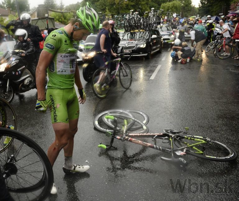 Do pádu pred cieľom 19. etapy 101. ročníka Tour de France sa zaplietol aj Peter Sagan. Foto: SITA/AP