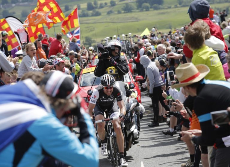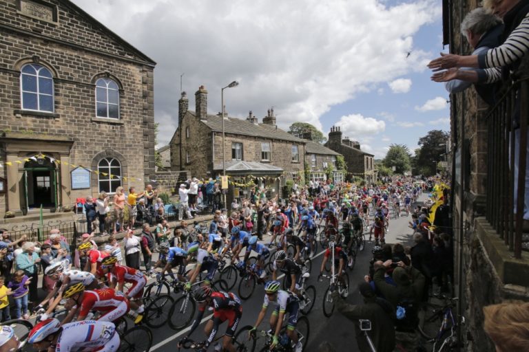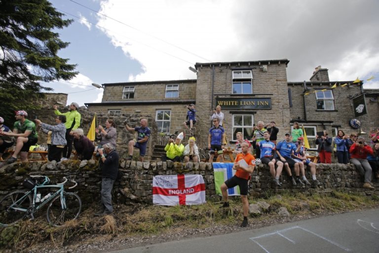 Fanúšikovia počas prvej etapy 101. ročníka Tour de France, ktorá merala 190,5 kilometra a viedla z Leedsu do Harrogate. Foto: SITA/AP
