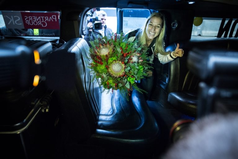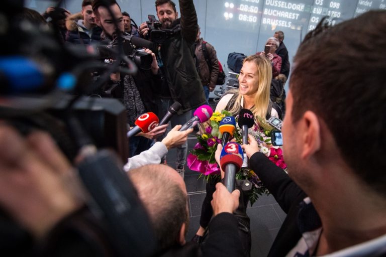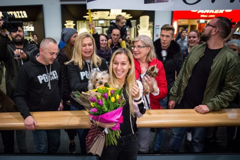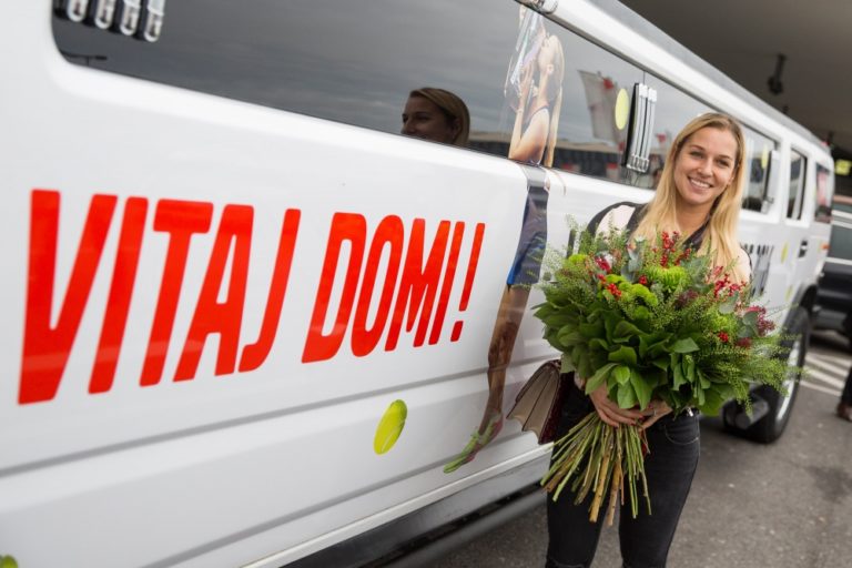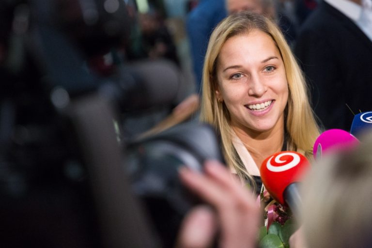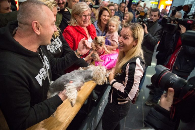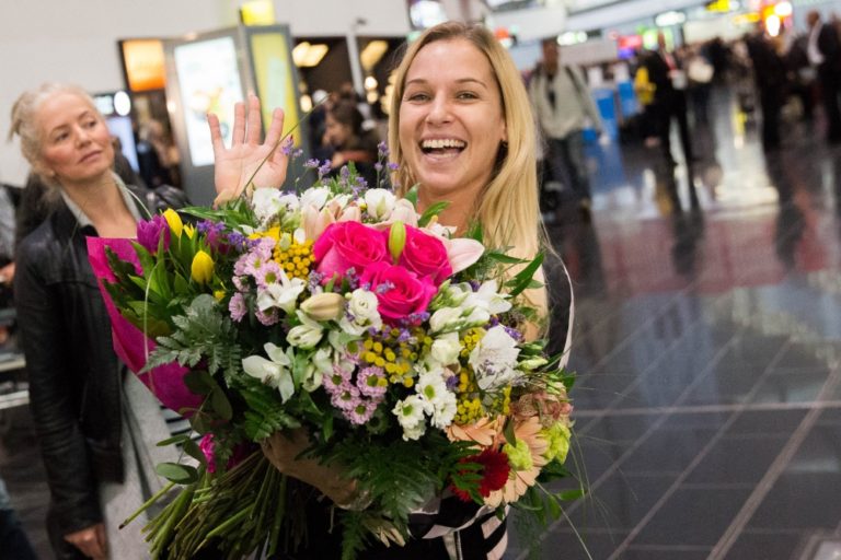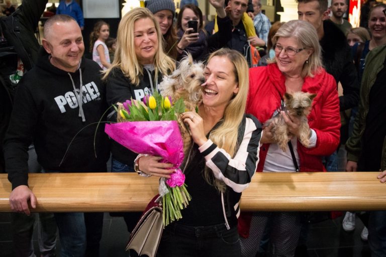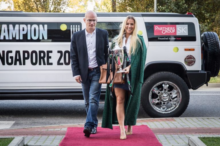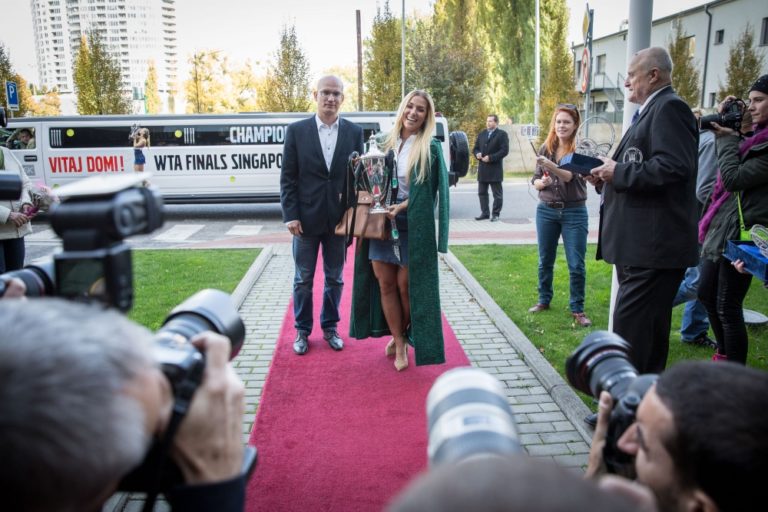 Víťazka WTA Finals v Singapure 2016 a piata najlepšia tenistka sveta Dominika Cibulková po prílete na Letisko Viedeň-Schwechat. Bratislava, 1. november 2016. Foto: SITA/Marko Erd