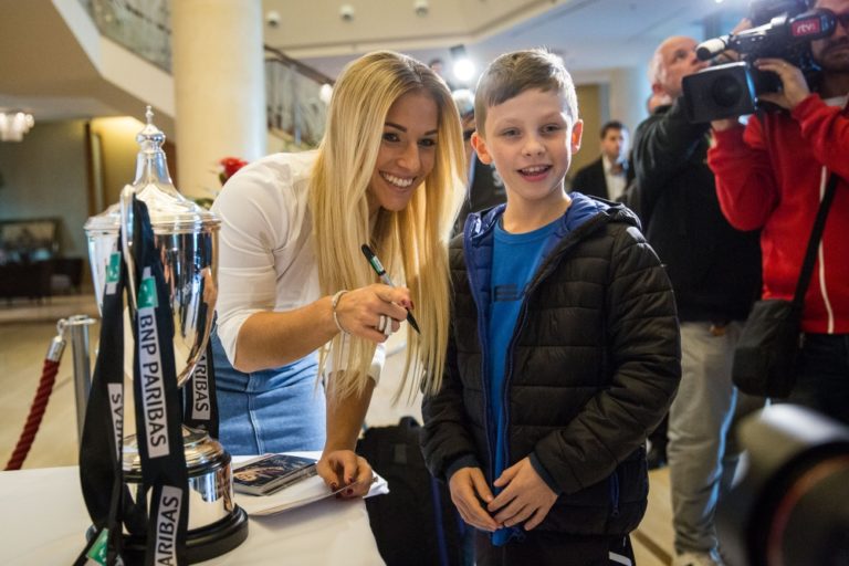 Víťazka WTA Finals v Singapure 2016 a piata najlepšia tenistka sveta Dominika Cibulková (vľavo) s fanúšikmi počas autogramiády po návrate z WTA Finals zo Singapuru. Bratislava, 1. november 2016. Foto: SITA/Marko Erd