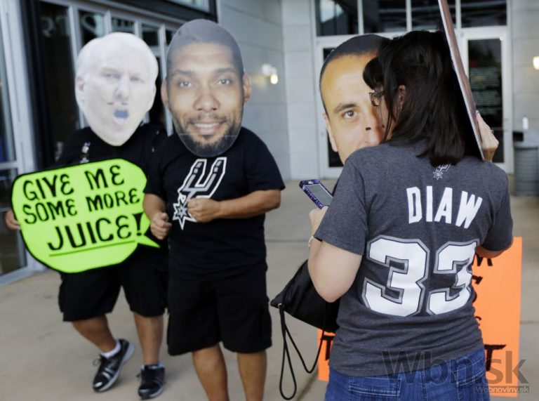 Do finálovej série tohto ročníka NBA lepšie vykročili basketbalisti San Antonia, ktorí vo štvrtkovom prvom zápase zužitkovali výhodu domácej palubovky a zvíťazili nad Miami 110:95. Fanúšikovia Spurs prišli tím povzbudiť s maskami (zľava) trénera Gregga Popovicha, Tima Duncana a Manu Ginobiliho. Foto: SITA/AP