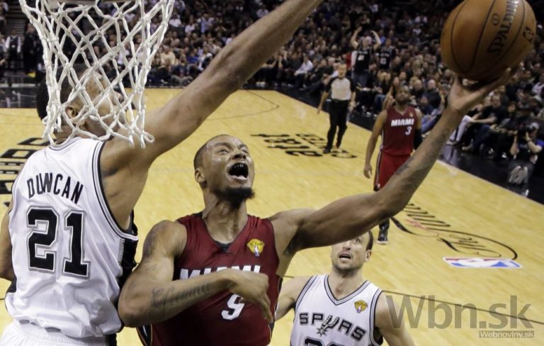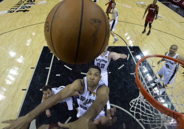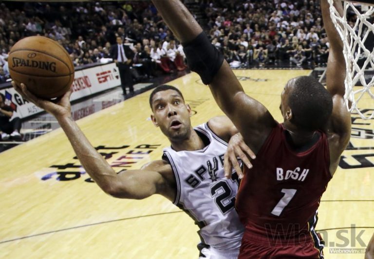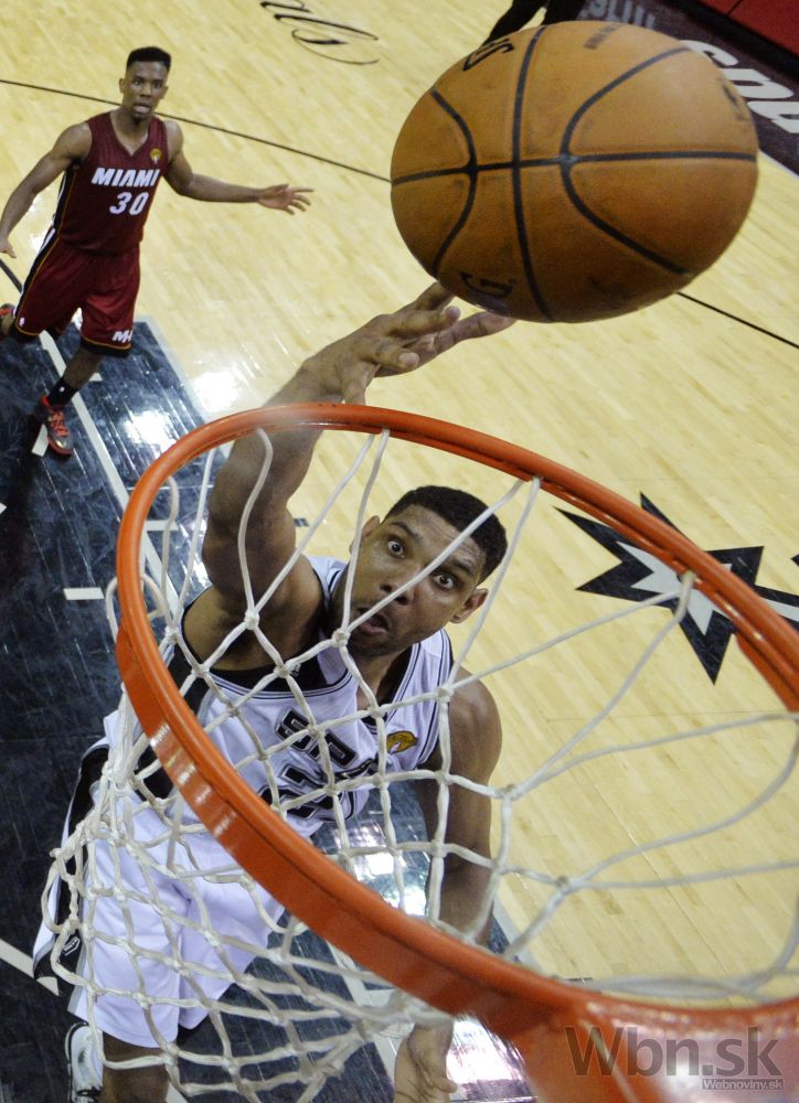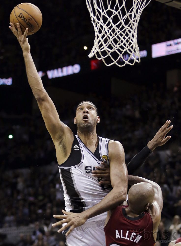 Do finálovej série tohto ročníka NBA lepšie vykročili basketbalisti San Antonia, ktorí vo štvrtkovom prvom zápase zužitkovali výhodu domácej palubovky a zvíťazili nad Miami 110:95. Tim Duncan zo San Antonia Spurs strieľa kôš. Foto: SITA/AP