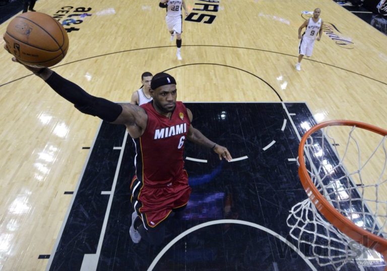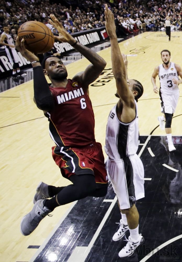 Do finálovej série tohto ročníka NBA lepšie vykročili basketbalisti San Antonia, ktorí vo štvrtkovom prvom zápase zužitkovali výhodu domácej palubovky a zvíťazili nad Miami 110:95. LeBron James z Miami strieľa proti Spurs. Tradične najlepším strelcom Miami sa stal LeBron James, ktorý sa postaral o 25 bodov. Foto: SITA/AP