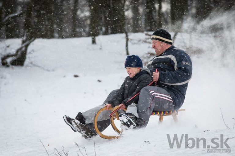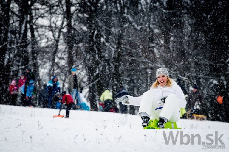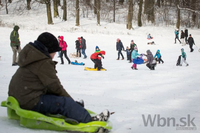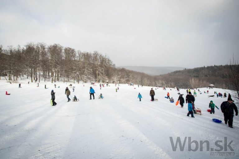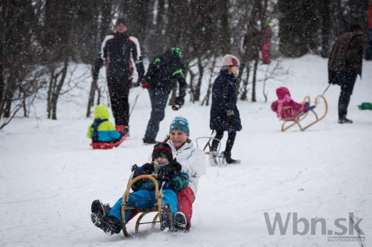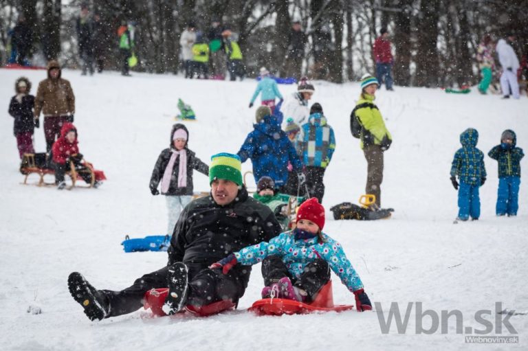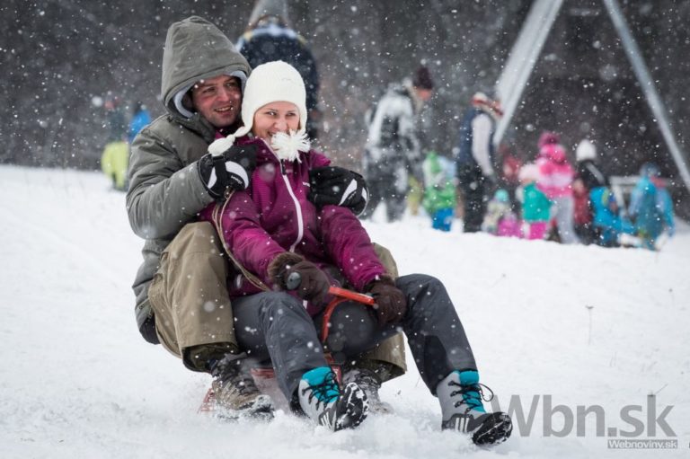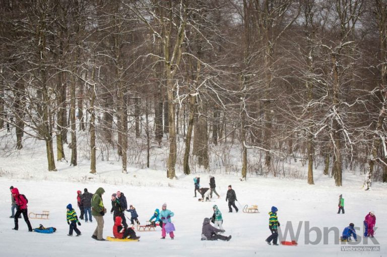 Deti s rodičmi sa sánkujú na zasneženej bratislavskej Kolibe (Kamzík). Bratislava, 30. december 2014. Foto: SITA/Jozef Jakubčo