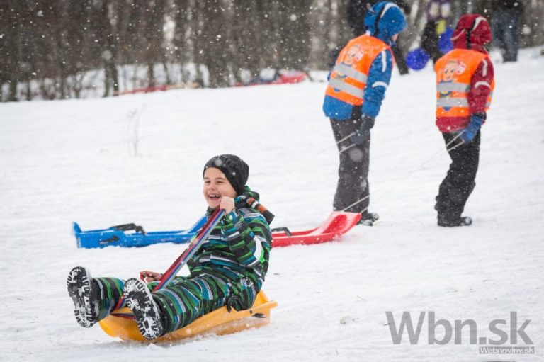 Deti sa sánkujú na zasneženej bratislavskej Kolibe (Kamzík). Bratislava, 30. december 2014. Foto: SITA/Jozef Jakubčo