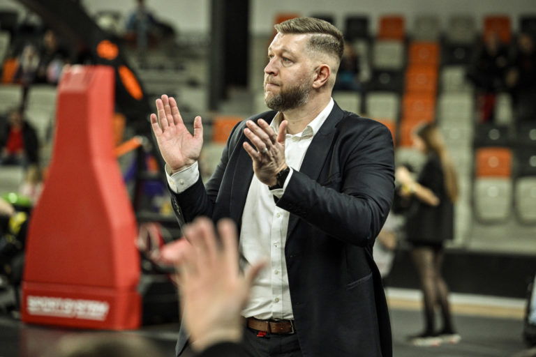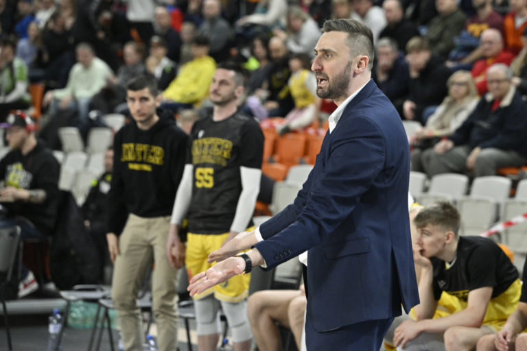 Tréner Teo Hojč z Spišskí rytieri počas 31. kola basketbalového zápasu SBL mužov 2023/2024 medzi Inter Bratislava - Spišskí rytieri (SNV). Bratislava, 16. február 2024. Foto: SITA/Milan Illík