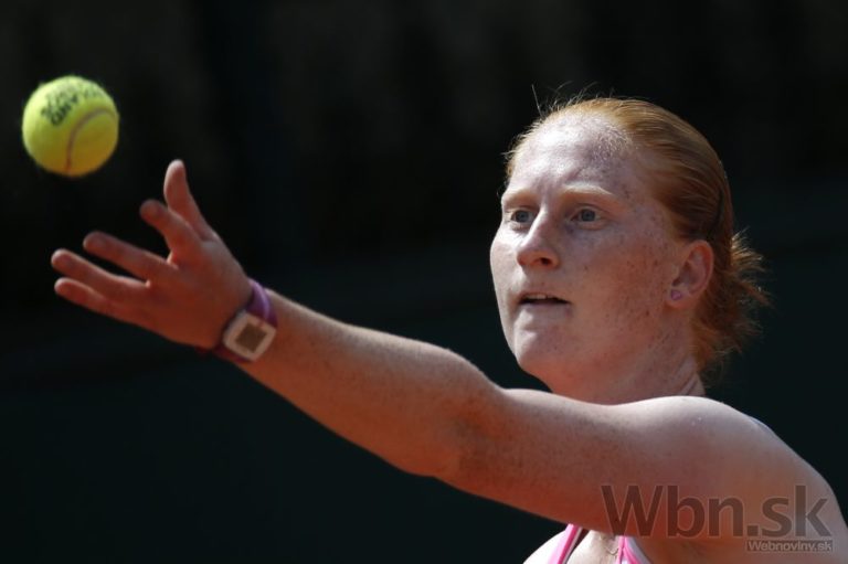 Slovenská tenistka Karolína Schmiedlová počas zápasu prvého kola na Roland Garros, v ktorom prehrala s Belgičankou Alison van Uytvanckovou dvakrát 6:7. Paríž, 26. máj 2015. Foto: SITA/AP