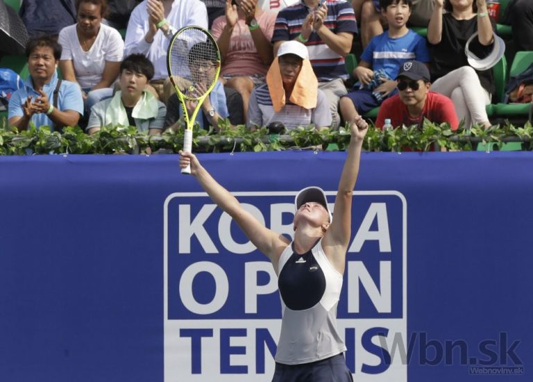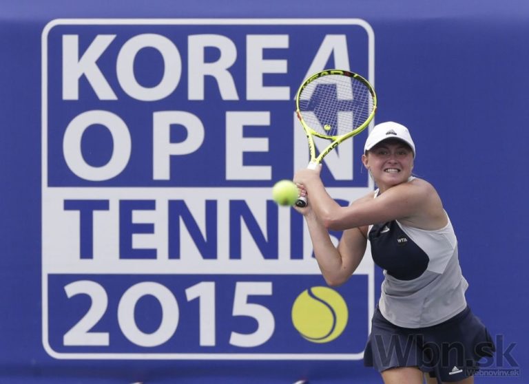 Slovenská tenistka Karolína Schmiedlová počas semifinálového zápasu na turnaji v Soule, v ktorom podľahla bieloruskej kvalifikantke Alexandre Sasnovičovej za 113 minút 6:3, 3:6, 3:6. Soul, 26. september 2015. Foto: SITA/AP