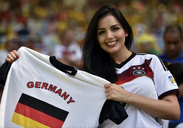Fanúšička Nemecka počas štvrťfinálového zápasu na MS v Brazílii proti Francúzsku. Foto: SITA/AP