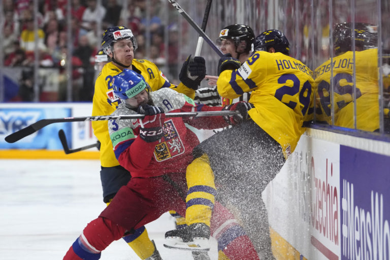 Semifinálový zápas Švédsko - Česko na MS v hokeji 2024. Praha (O2 Arena), 25. máj 2024. Foto: SITA/AP.
