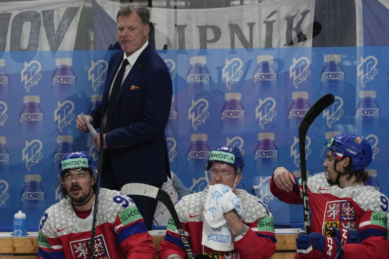 Český tréner Radim Rulík počas semifinálového zápasu proti Švédsku na MS v hokeji 2024. Praha (O2 Arena), 25. máj 2024. Foto: SITA/AP.