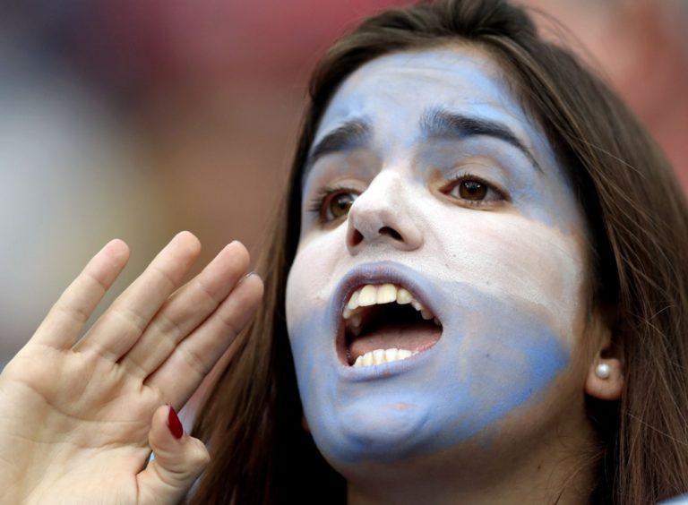 Argentínska fanúšička počas stredajšieho semifinálového zápasu na svetovom šampionáte v Brazílii. Foto: SITA/AP
