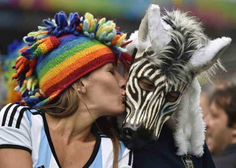 Fanúšikovia Argentíny počas stredajšieho semifinálového zápasu na svetovom šampionáte v Brazílii. Foto: SITA/AP
