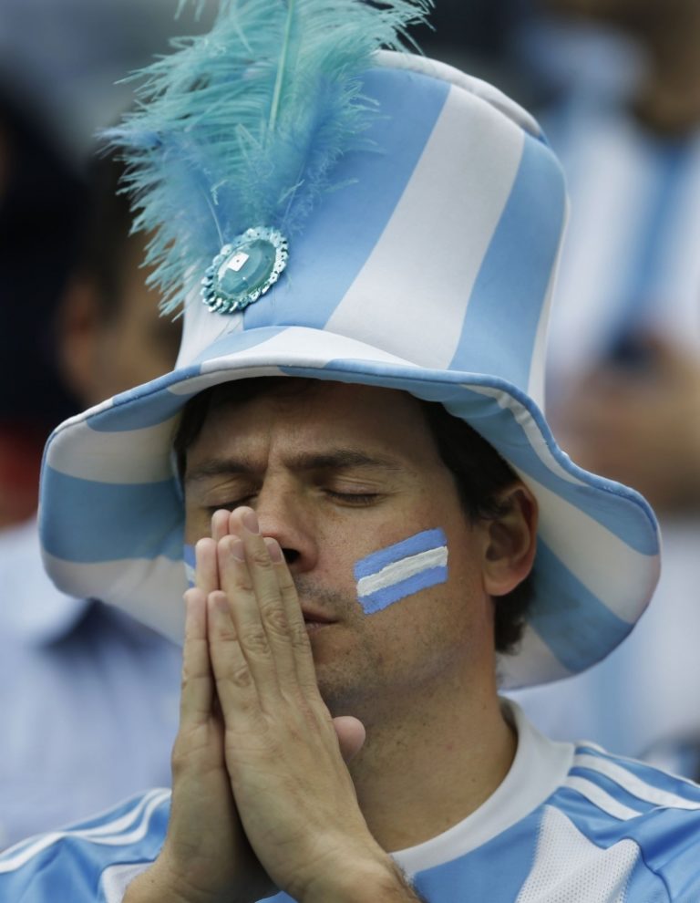 Argentínsky fanúšik sa modlí počas stredajšieho semifinálového zápasu na svetovom šampionáte v Brazílii. Foto: SITA/AP