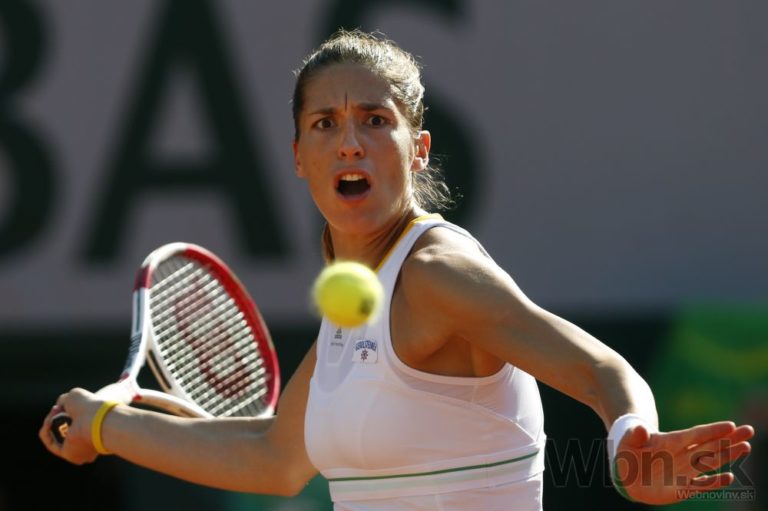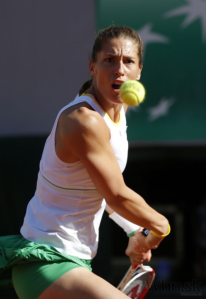 Nemecká tenistka Andrea Petkovicová počas semifinálového zápasu na Roland Garros, v ktorom prehrala s Rumunkou Simonou Halepovou 2:6, 6:7 (4) za 90 minút. Foto: SITA/AP
