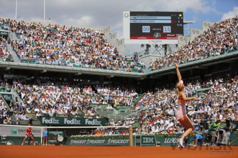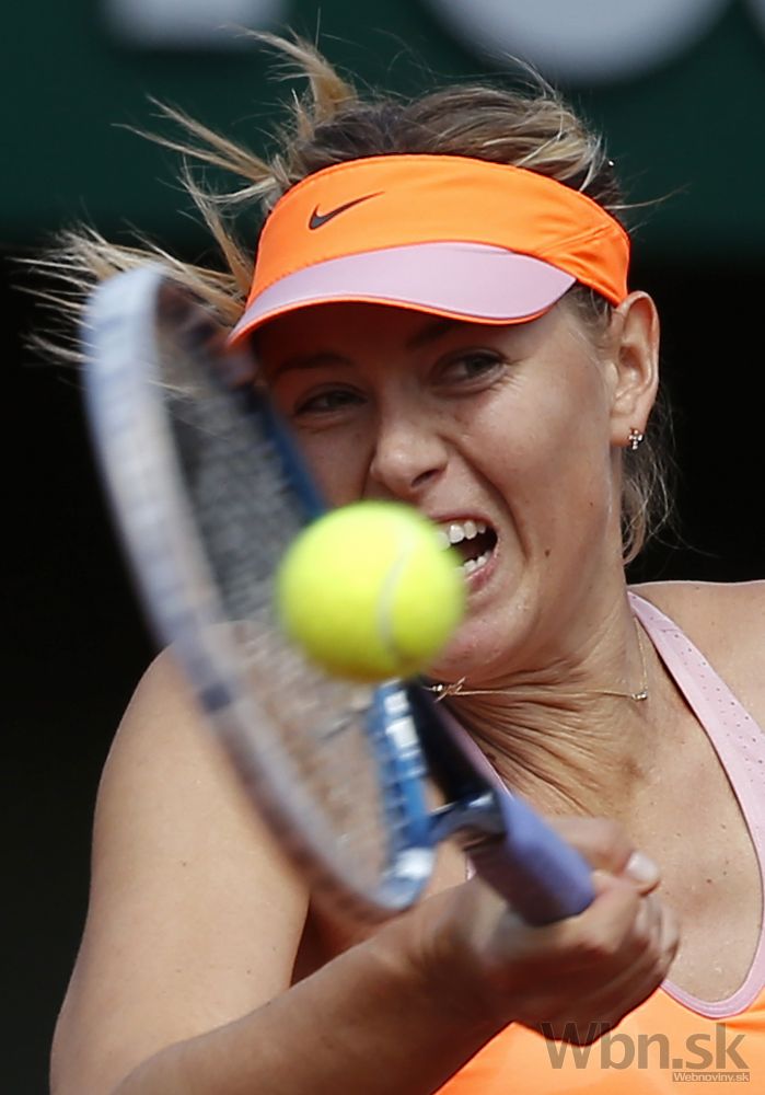 Ruská tenistka Maria Šarapovová počas semifinálového zápasu na Roland Garros, v ktorom porazila Kanaďanku Eugenie Bouchardovú 4:6, 7:5, 6:2 za 147 minút. Foto: SITA/AP