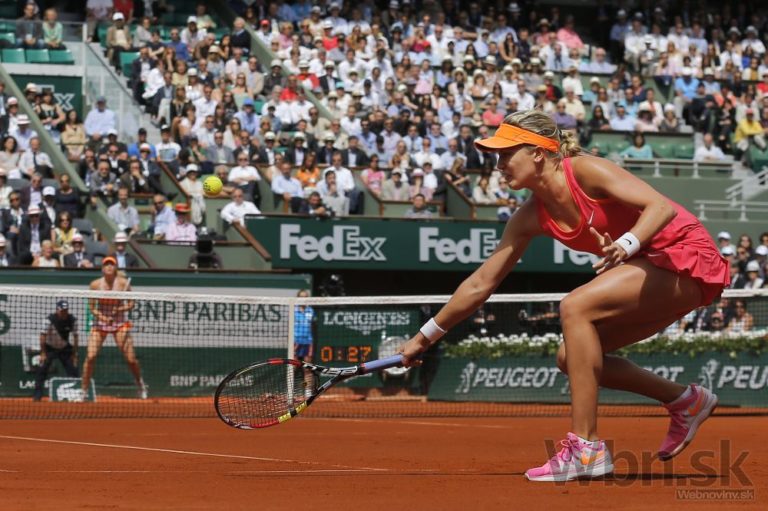 Kanadská tenistka Eugenie Bouchardová počas semifinálového zápasu na Roland Garros, v ktorom prehrala s Ruskou Mariou Šarapovovou 6:4, 5:7, 2:6 za 147 minút. Foto: SITA/AP