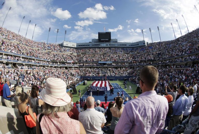 Slávnostný ceremoniál na Arthur Ashe Stadium pred finálovým zápasom ženskej dvojhry na US Open medzi Serenou Williamsovou a Carolinou Wozniackou. Foto: SITA/AP