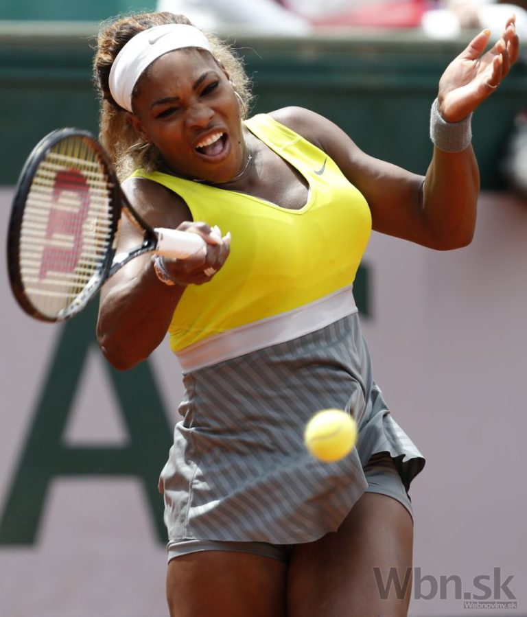 Americká tenistka Serena Williamsová vracia loptičku Španielke Garbine Muguruzovej počas zápasu na Roland Garros. Paríž, Francúzsko, 28. mája 2014.