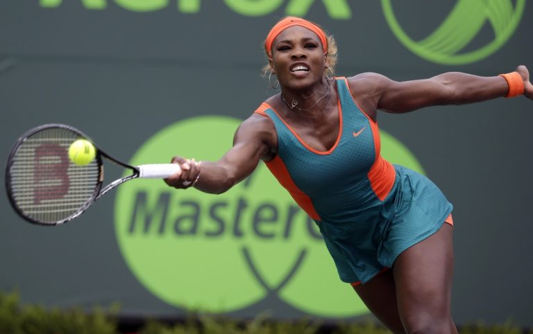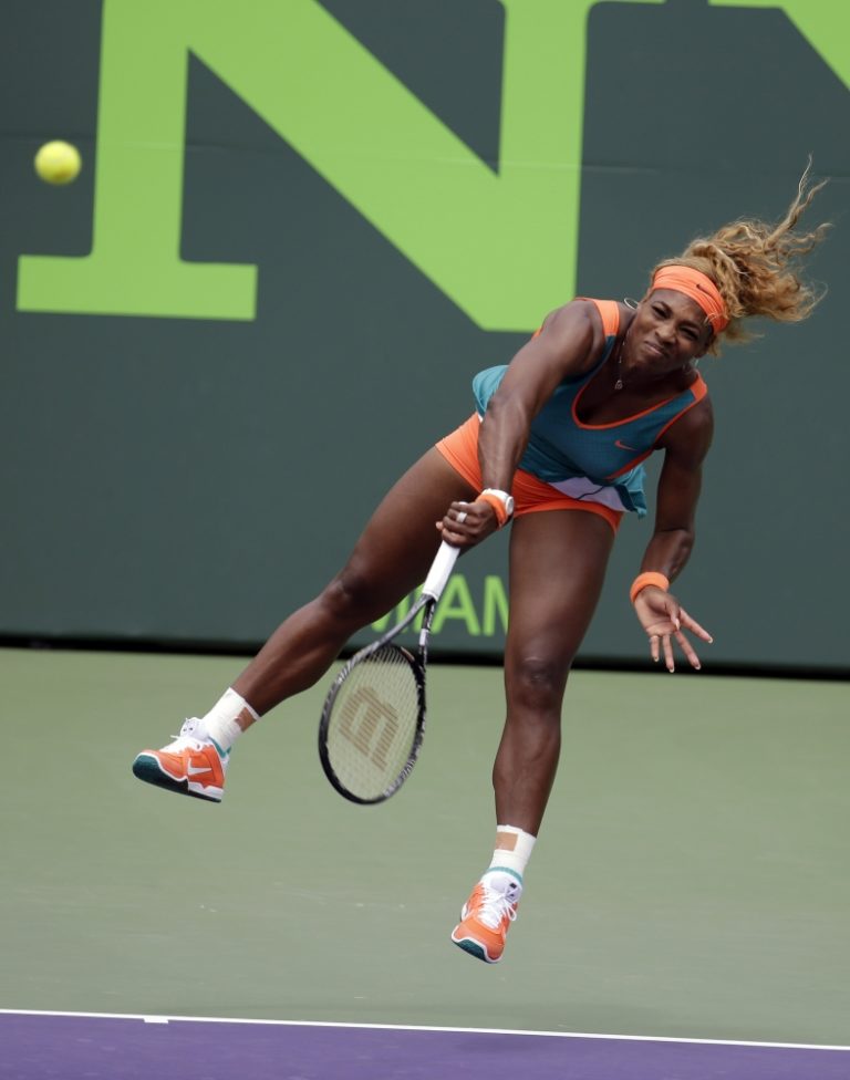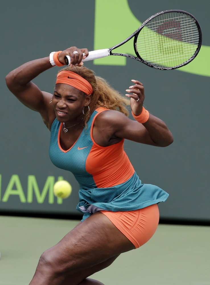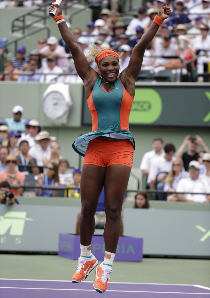Americká tenistka Serena Williamsová počas finálového zápasu na turnaji v Miami, v ktorom porazila Číňanku Na Li za 120 minút 7:5, 6:1. Foto: SITA/AP