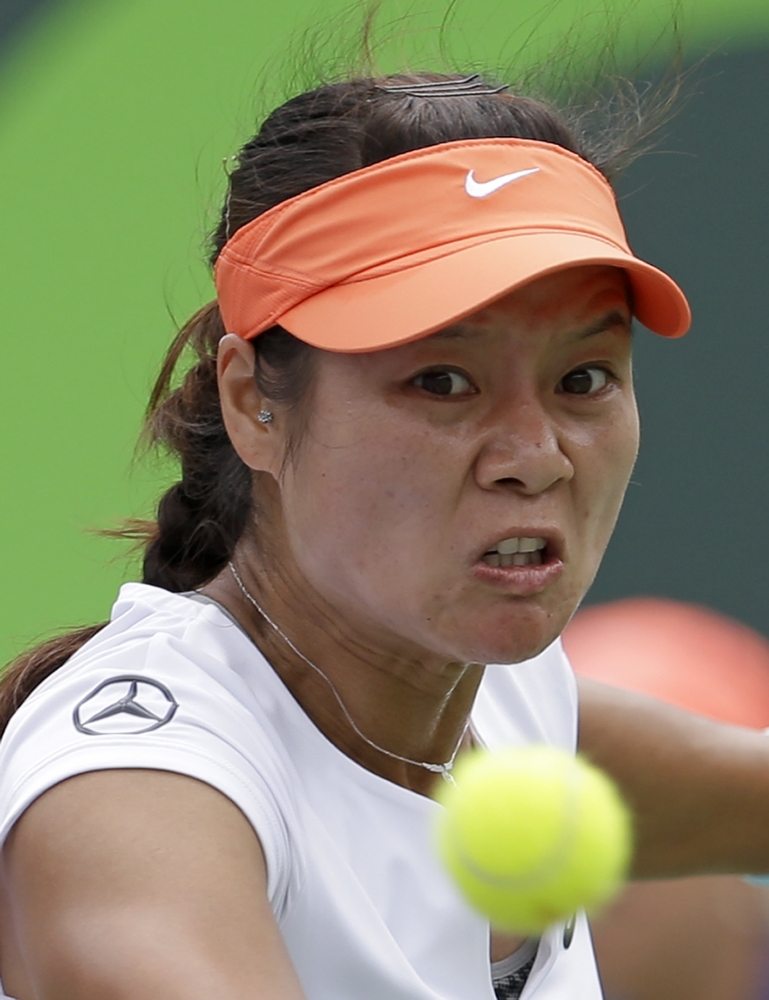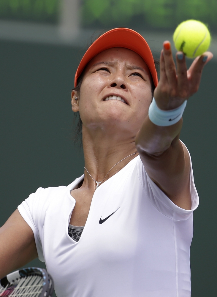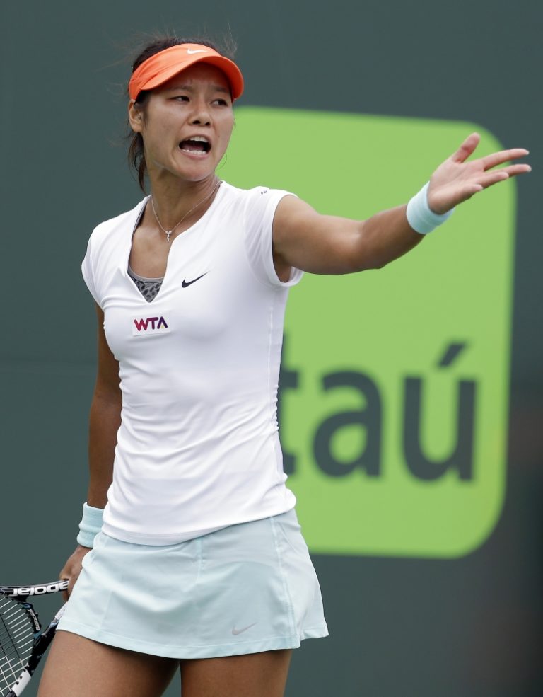 Čínska tenistka Na Li počas finálového zápasu na turnaji v Miami, v ktorom prehrala s Američankou Serenou Williamsovou za 120 minút 5:7, 1:6. Foto: SITA/AP