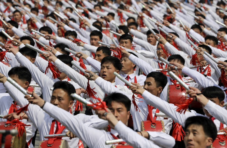 Severná Kórea oslávila 105. výročie narodenia svojho zakladateľa Kim Ir-sena, na počesť ktorého usporiadala v metropole Pchjongjang veľkolepú vojenskú prehliadku. Pchjongjang, 15. apríl 2017. Foto: KRT via AP
