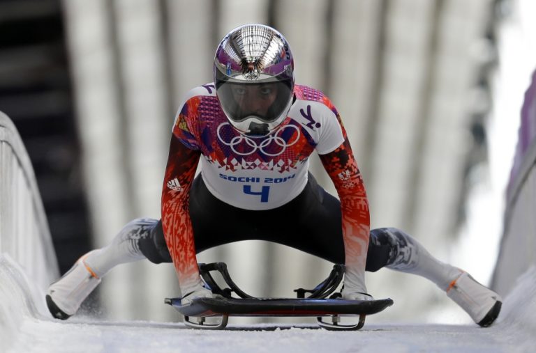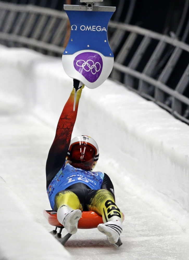 Nemecký sánkar Felix Loch počas štvrtkovej jazdy v rámci súťaže štafiet na olympiáde v Soči. Foto: SITA/AP