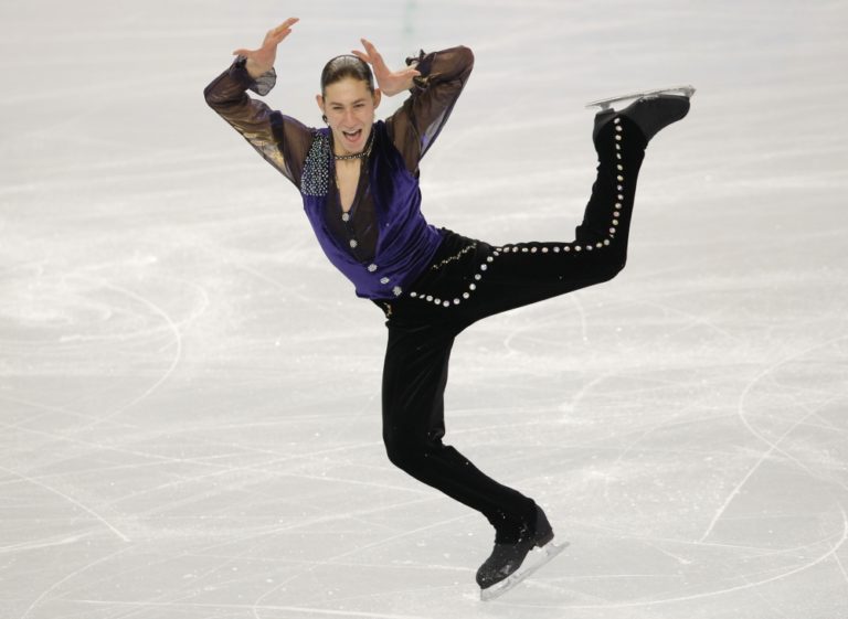 Americký krasokorčuliar Jason Brown počas štvrtkového krátkeho programu mužov. Foto: SITA/AP