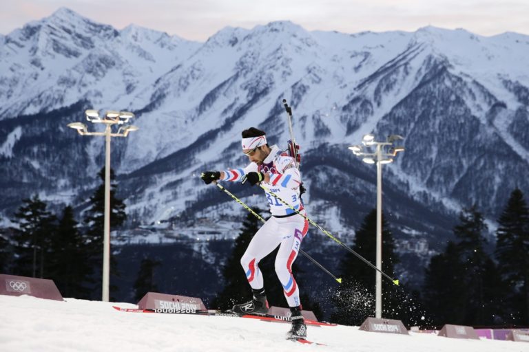 Víťaz vytrvalostných pretekov mužov na 20 kilometrov, Francúz Martin Fourcade. Rusko, Soči, 13. februára 2014. Foto: SITA/AP