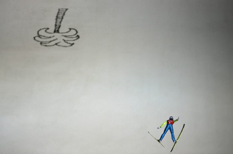 Rumunský skokan na lyžiach Sorin Pitea počas tréningu na veľkom mostíku. Foto: SITA/AP