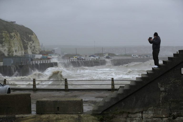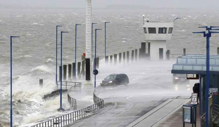 Silná zimná búrka, ktorá sa prehnala v nedeľu Britskými ostrovmi a severnou Európou sprevádzaná vetrom so silou hurikánu a výdatným dažďom, sa presunula ďalej na východ, pričom narušila dopravu v Nemecku a prinútila úrady v niektorých regiónoch preventívne pozatvárať školy. 10. február 2020 Foto: SITA/AP