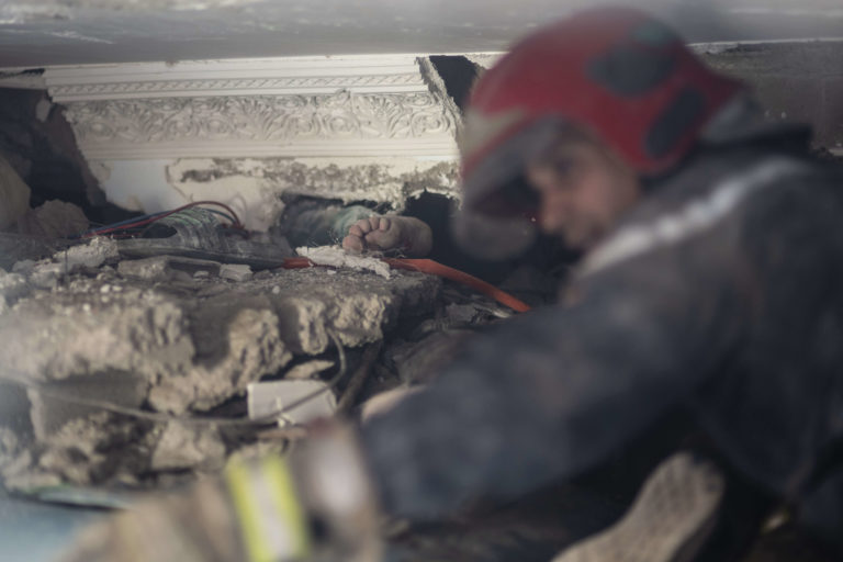 Záchranári vyťahujú z trosiek muža, ktorého zavalilo pri zemetrasení v dedine Moulay Brahim. Foto: SITA/AP