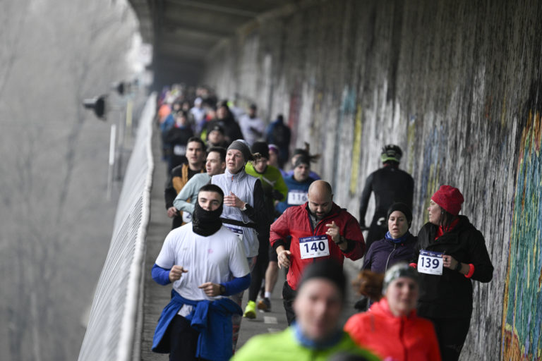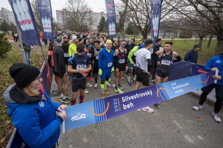 Atmosféra počas 32. ročníka Silvestrovského behu cez bratislavské mosty, ktorý sa uskutočnil po štvorročnej pauze. Bratislava, 31. december 2023. Foto: SITA/Milan Illík