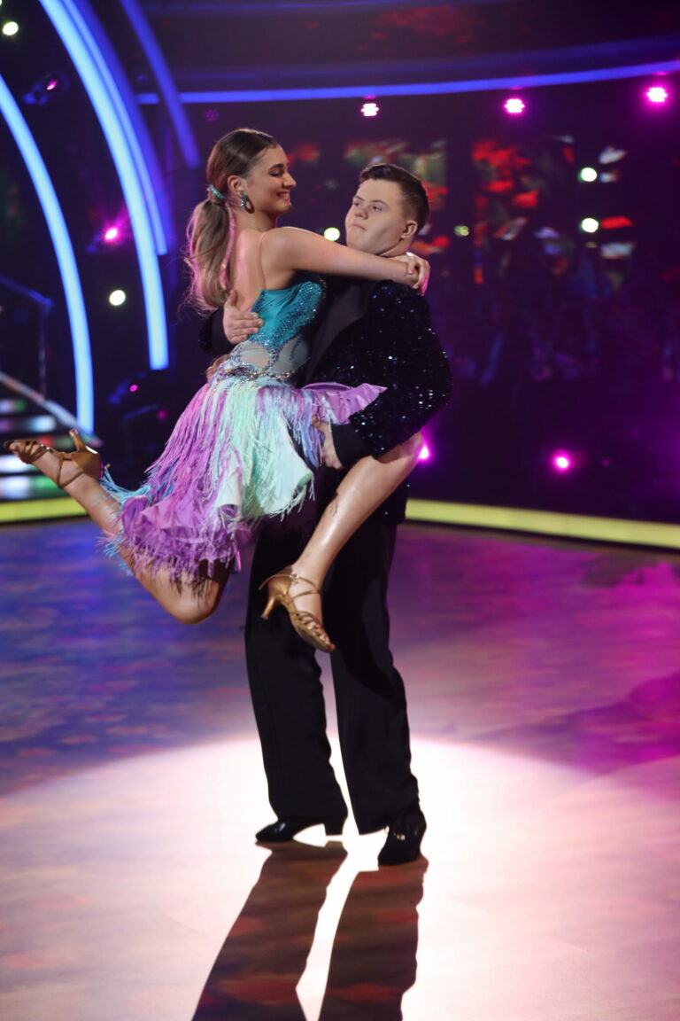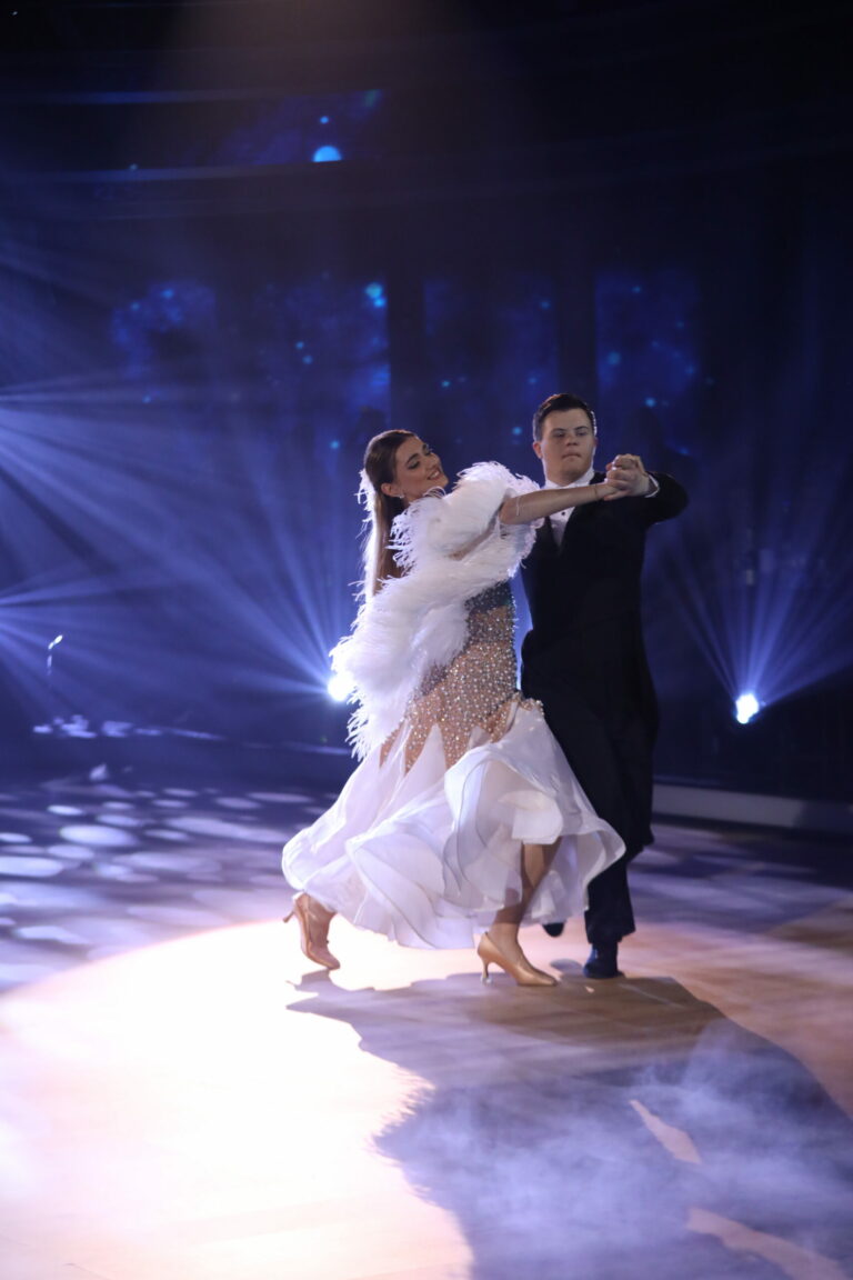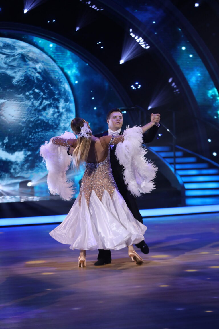 Šimon Jakuš a Patrícia Piešťanská počas druhého priameho prenosu Let’s Dance 2025 (9. marec 2025). Foto: TV Markíza.