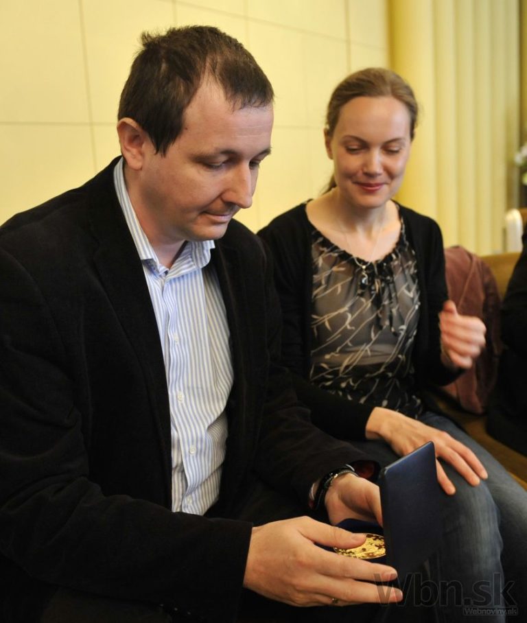 Zľava: Redaktori domáceho spravodajstva agentúry SITA Ján Petrovič a Tatiana Majerská počas odovzávania cien Literárneho fondu za novinársku tvorbu v roku 2013. Zuzana Devera a kolektív domáceho spravodajstva SITA boli ocenení za spravodajstvo z druhého kola volieb predsedov samosprávnych krajov. (Bratislava, 6. máj 2014) Foto: SITA/Ján Slovák