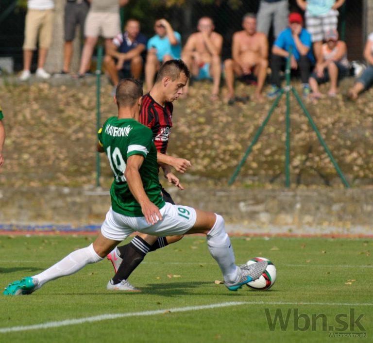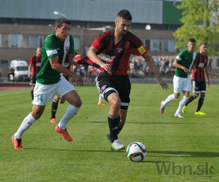 Zľava: Pavol Majerník z MFK Skalica a Martin Mikovič z FC Spartak Trnava v zápase 5. kola futbalovej Fortuna ligy - jesennej časti ročníka 2015/2016 medzi MFK Skalica - FC Spartak Trnava. Skalica, 16. august 2015. Foto: SITA/Martin Medňanský