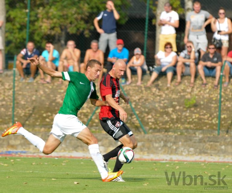Sprava: Ľuboš Hajdúch z MFK Skalica a Martin Mikovič z FC Spartak Trnava v zápase 5. kola futbalovej Fortuna ligy - jesennej časti ročníka 2015/2016 medzi MFK Skalica - FC Spartak Trnava. Skalica, 16. august 2015. Foto: SITA/Martin Medňanský