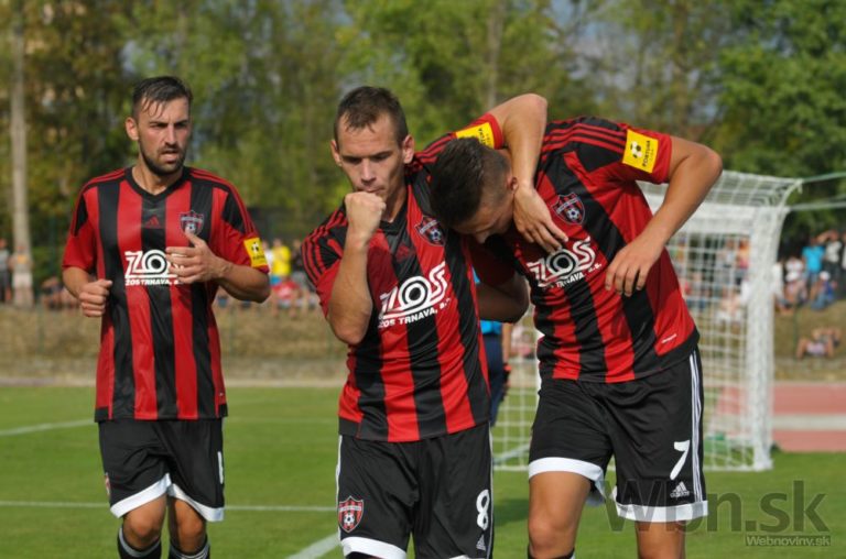 Zľava: José David Casado, Martin Mikovič a Jakub Vojtuš, všetci z FC Spartak Trnava, v zápase 5. kola futbalovej Fortuna ligy - jesennej časti ročníka 2015/2016 medzi MFK Skalica - FC Spartak Trnava. Skalica, 16. august 2015. Foto: SITA/Martin Medňanský