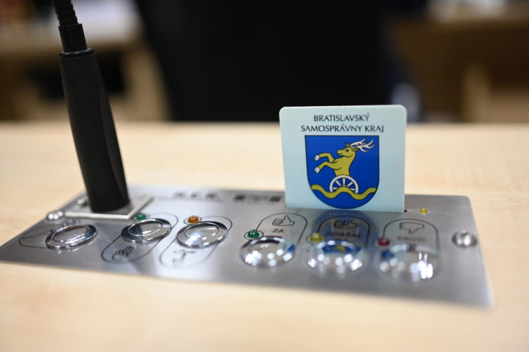 Hlasovacie zariadenie počas ustanovujúceho zasadnutia Zastupiteľstva Bratislavského samosprávneho kraja (BSK). Bratislava, 22. november 2022. Foto: SITA/BSK