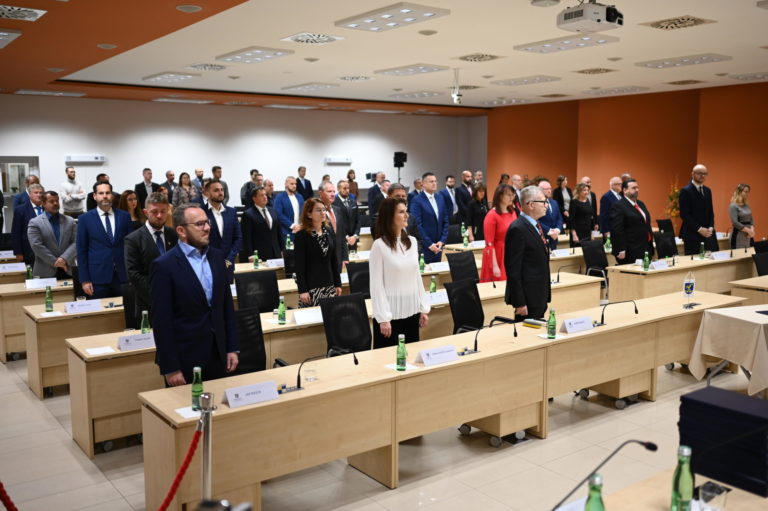Novozvolení poslanci Zastupiteľstva BSK počas ustanovujúceho zasadnutia Zastupiteľstva Bratislavského samosprávneho kraja (BSK). Bratislava, 22. november 2022. Foto: SITA/BSK