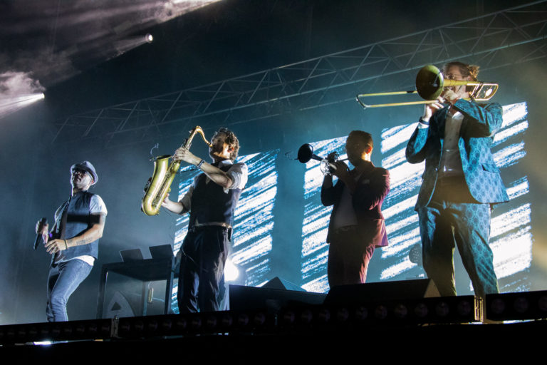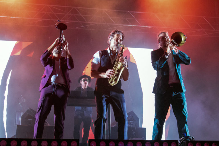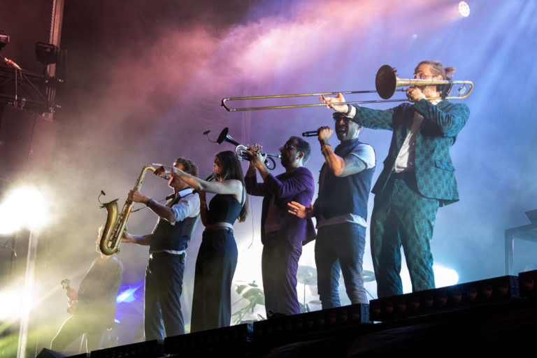 Elektroswingová skupina Parov Stelar Band počas vystúpenia v rámci festivalu Uprising 2023 v Bratislave. Bratislava, 26. august 2023. Foto: SITA/Andrea Mezeiová.