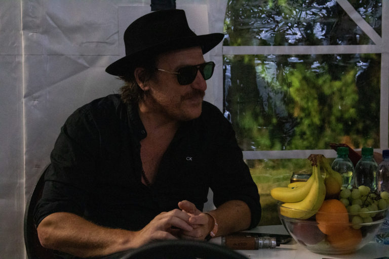 Rakúsky hudobník a DJ Marcus Füreder známy ako Parov Stelar počas rozhovoru pred vystúpením elektroswingovej skupiny Parov Stelar Band v rámci festivalu Uprising 2023 v Bratislave. Bratislava, 26. august 2023. Foto: SITA/Andrea Mezeiová.