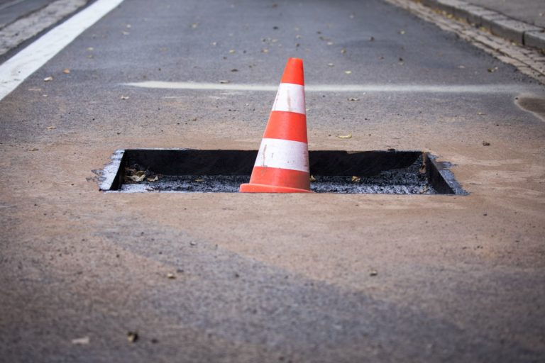 Úprava vozovky počas technicko-bezpečnostnej skúšky na prejazd električiek po novej trati na Špitálskej ulici. Križovatku Mickiewiczova-Špitálska ulica od soboty 25. novembra sprejazdnia. Bratislava, 24. november 2017. Foto: SITA/Diana Černáková