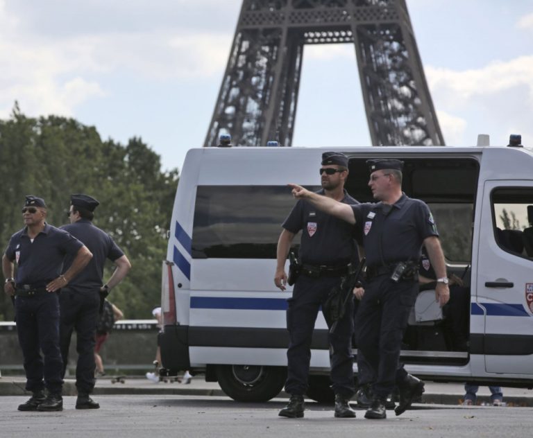 Bezpečnostné zložky počas 21. etapy Tour de France zo Chantilly do Paríža s cieľom na Elyzejských poliach. Foto: SITA/AP