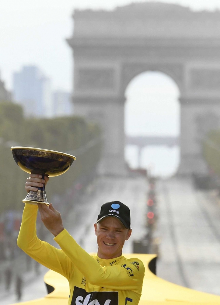 Britský cyklista Christopher Froome pred 21. etapou Tour de France zo Chantilly do Paríža s cieľom na Elyzejských poliach. Foto: SITA/AP