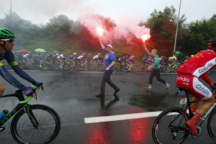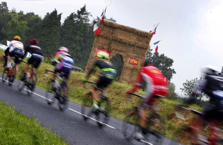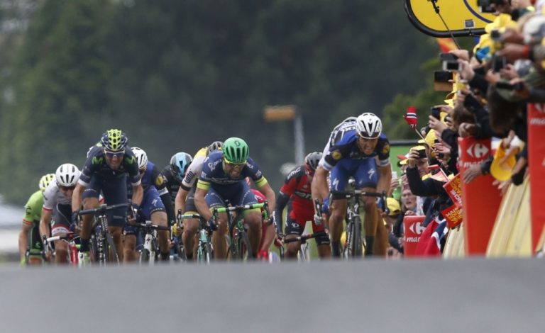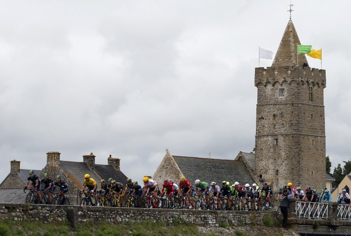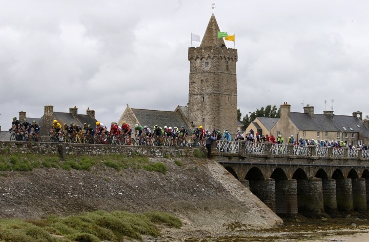 Cyklisti bojujú o triumf v druhej etape Tour de France 2016, ktorá štartovala v Saint-Lô a po 183 km vrcholila v Cherbourg-en-Cotentin. Foto: SITA/AP