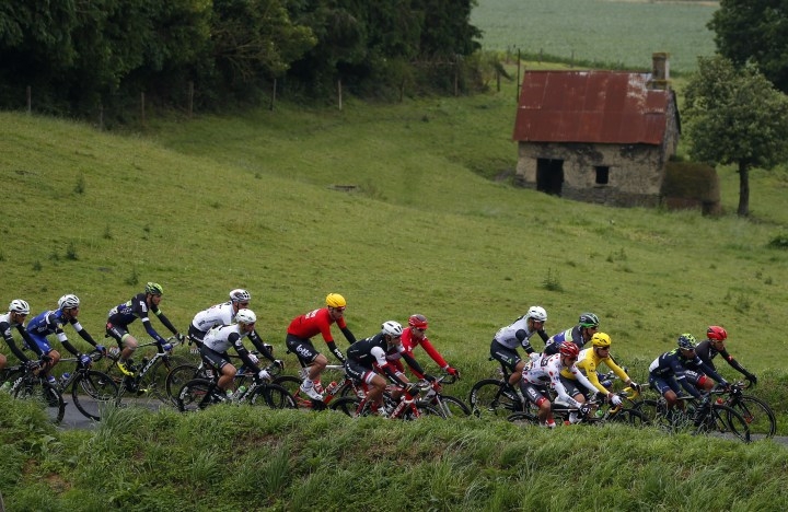 Alberto Contador počas druhej etapy Tour de France, ktorá viedla zo Saint-Lô do Cherbourg-en-Cotentin a merala 183 kilometrov. Foto: SITA/AP
