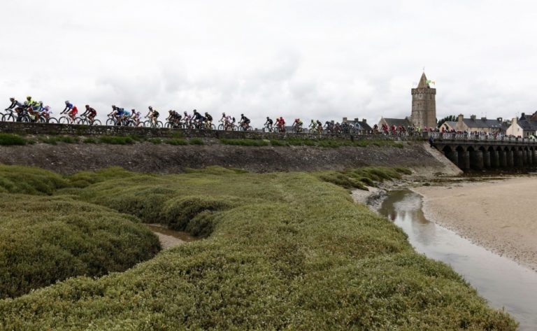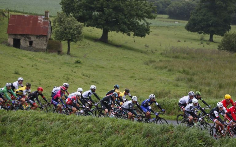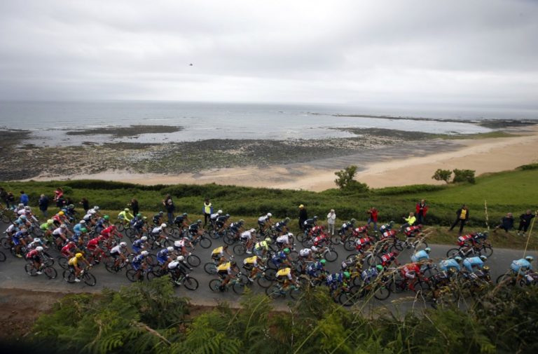 Cyklisti počas druhej etapy Tour de France, ktorá viedla zo Saint-Lô do Cherbourg-en-Cotentin a merala 183 kilometrov. Foto: SITA/AP
