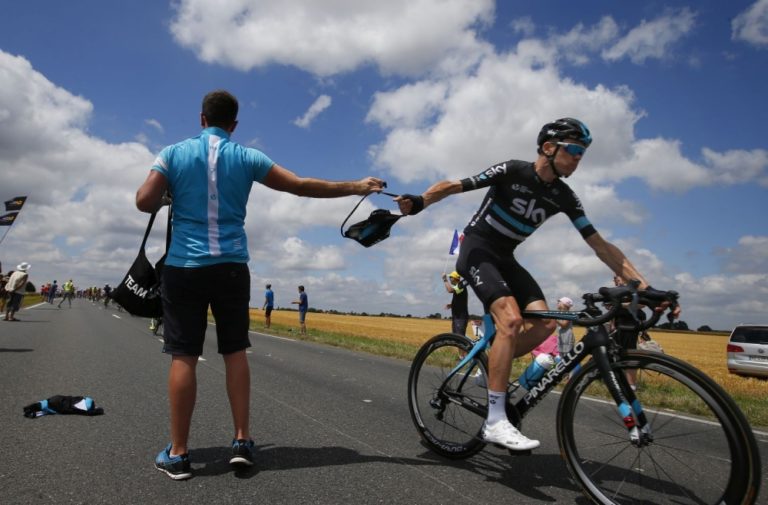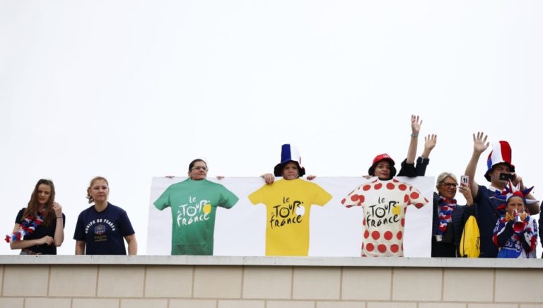 Slovenský cyklista Peter Sagan na stupňoch pre víťazov po štvrtej etape 103. ročníka Tour de France, v ktorej obsadil tretie miesto. Limoges, 5. júl 2016. Foto: SITA/AP